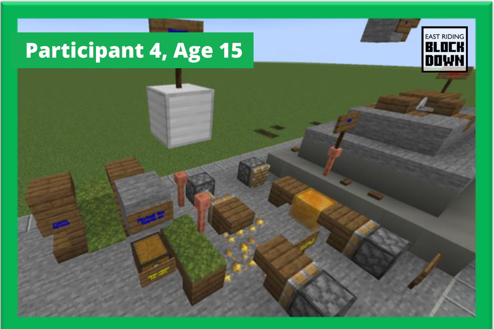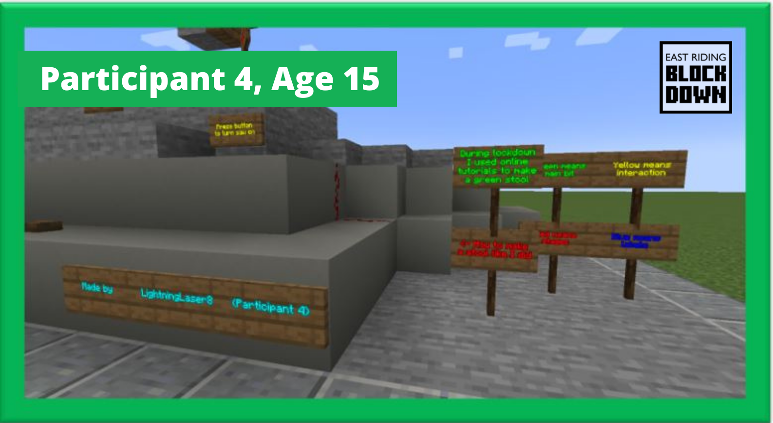 Participant 4, age 15, has built an ingenious creation on our online, multiplayer Archiverse server which will be catalogued and preserved in our archives for future generations under the reference ERBP.