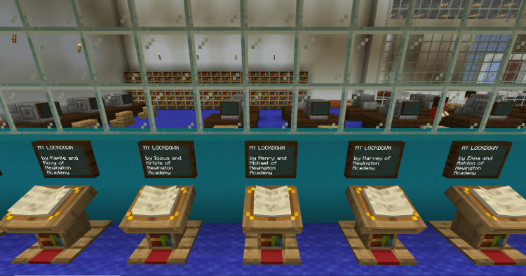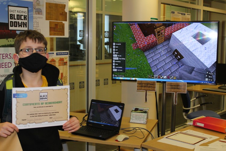 The Audience Agency’s grant enabled us to construct our Archiverse in the Minecraft video game and use this world as an interactive learning space for collecting and archiving young people’s experiences about the COVID-19 lockdown. At the centre of the Archiverse is a reconstruction of the Treasure House, home of the East Riding Archives, where participants can explore and see other young people’s Minecraft creations.
